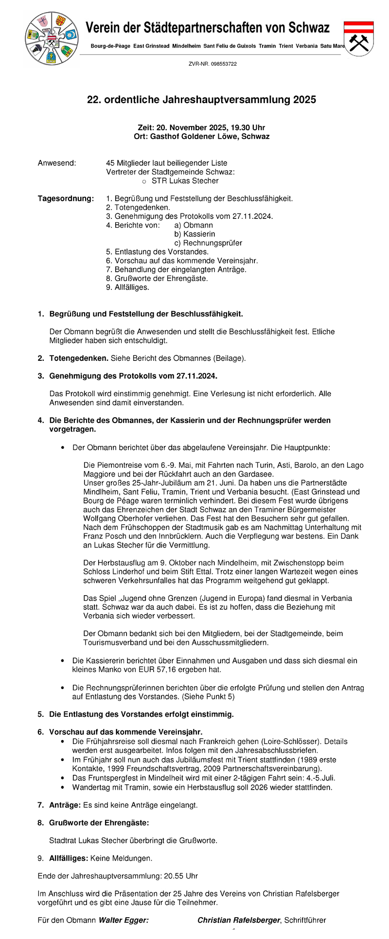 | 22. Jahreshauptversammlung, 20. November 2025 |