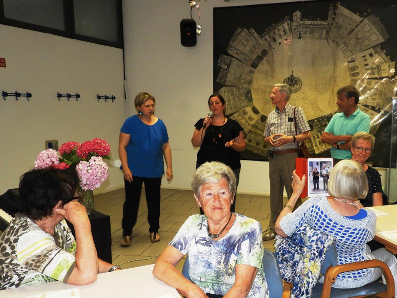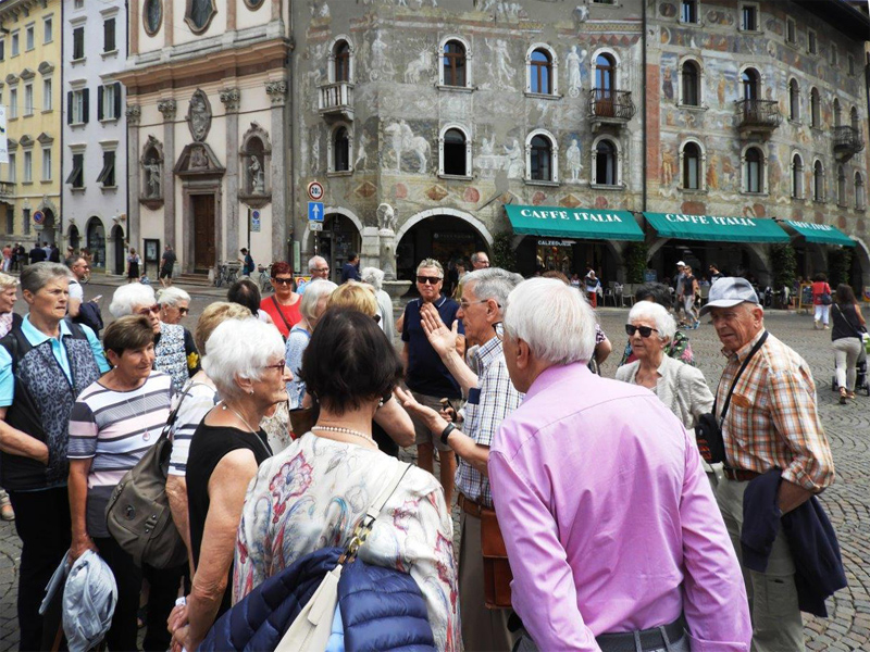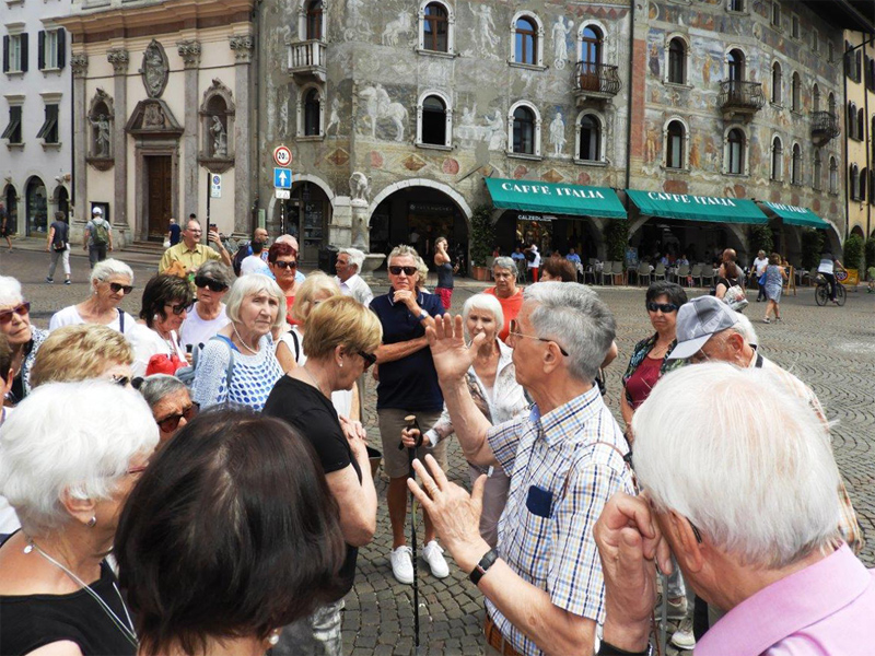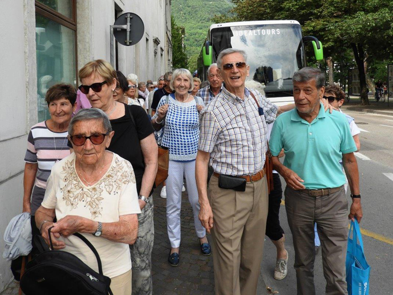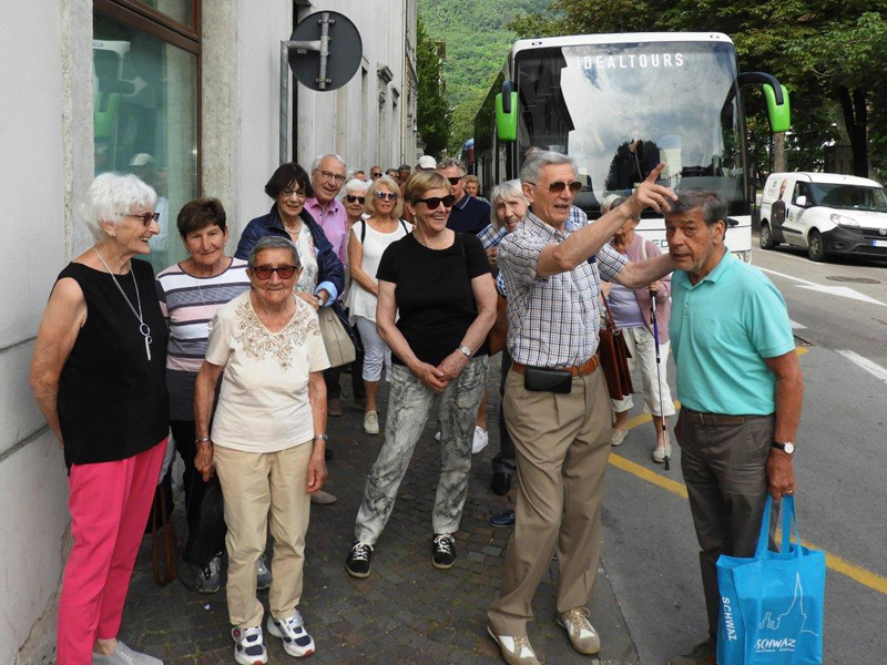 Eine 43 Personen umfassende Senioren-Delegation aus Schwaz mit Obmann und Seniorenreferent GR Walter Egger an der Spitze, besuchte die Senioren der Partnerstadt Trient. Besonderes Ziel dieser Reisen ist es, die Kultur und Lebensweise der jeweils anderen Stadt und ihres Umfeldes noch besser kennen und verstehen zu lernen und vor allem freundschaftlich zu vertiefen. In Trient erwartete Egidio Dalla Costa, Partnerschaftsbeauftragter von Trient-Argentario „Amici di Schwaz“, schon ungeduldig die angereisten Schwazer Senioren. Der gemeinsame Empfang beim Kaleidoskop-Zentrum der Senioren in Trient verlief sehr herzlich und in betont freundschaftlicher Atmosphäre. Mit dabei war allen voran Paola Luchi als Obfrau von zurzeit 900 Senioren-Mitgliedern, und ihre Helferinnen Francesca Chini, Silvana Gemma und Fioli Bazzanella. Täglich besuchen rund 200 Senioren dieses Zentrum, um zu Singen, Tanzen, Basteln und Gymnastik zu betreiben, aber auch um gemeinsame Ausflüge zu unternehmen Ein Seniorenchor mit Chorleiter Alessandro Mozna und zwei Solisten sorgte für eine besondere gesangliche Begrüßungsnote an die Schwazer und erhielt stürmischen Applaus dafür. Auch eine gesunde Jause mit Getränken und kleine, selbstgebastelte Gestecke, von den Seniorinnen angefertigt und an die Schwazer zur Verteilung gebracht wurden, hoben die Stimmung gewaltig. Obmann GR Egger überreichte als kleinen Dank an die Verantwortlichen des Seniorenzentrums in Trient den neuen Schwazer Bilderband und lud gleichzeitig zum Gegenbesuch nach Schwaz ein. Eine kurze Stadtführung mit Egidio Dalla Costa rundete den Vormittag in Trient ab. Nach dem Mittagessen in Martignano, im Restaurant „zum Knappen“, konnte bei einem Besuch in Villamontagna in der Salamifabrik E. Francetti eine besondere Spezialität der dortigen Region auch gekauft werden. Abschied von den Trienter Freunden wurde im Seniorenzentrum „Le Querce“ in Cognola genommen, wo die Verantwortlichen mit Silvano, Pia, Anna und Loretta, gemeinsam mit Egidio Dalla Costa eine kleine Erfrischung vorbereitet hatten. „Ich bedanke mich für so viel Gastfreundschaft und Herzlichkeit, die wir heute in unserer Partnerstadt Trient erleben durften“, erklärte ein sichtlich zufriedener Seniorenreferent Obmann GR Walter Egger, und meinte: “Ich werde natürlich versuchen, beim nächsten Wiedersehen in Schwaz die Gastfreundschaft zu erwidern, und auch unsere schönsten Seiten zu zeigen!“ OAR