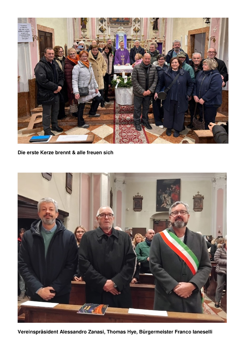 Auch heuer fand diese Tradition großen Anklang, als die erste Kerze am Schwazer Adventkranz in der Kirche von Villa Montagna entzündet wurde. Der Bürgermeister von Villamontagna-Trient, Franco Ianeselli verwies in seiner Rede auf die wichtige Bedeutung gelebter Partnerschaften, die Menschen über Regionen, Ländergrenzen in Europa verbinden. Präsident Andrea Villardi sprach über die enge und gelebte Verbindung der zwei Partnerstädte.