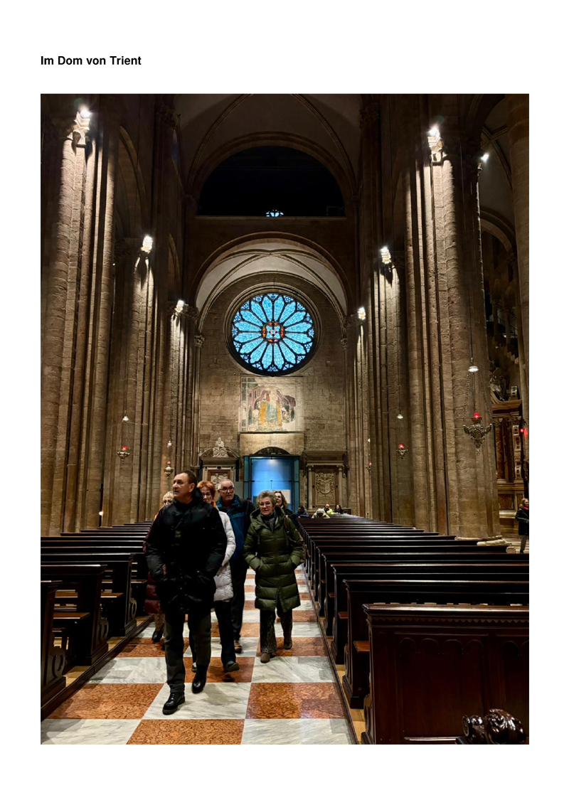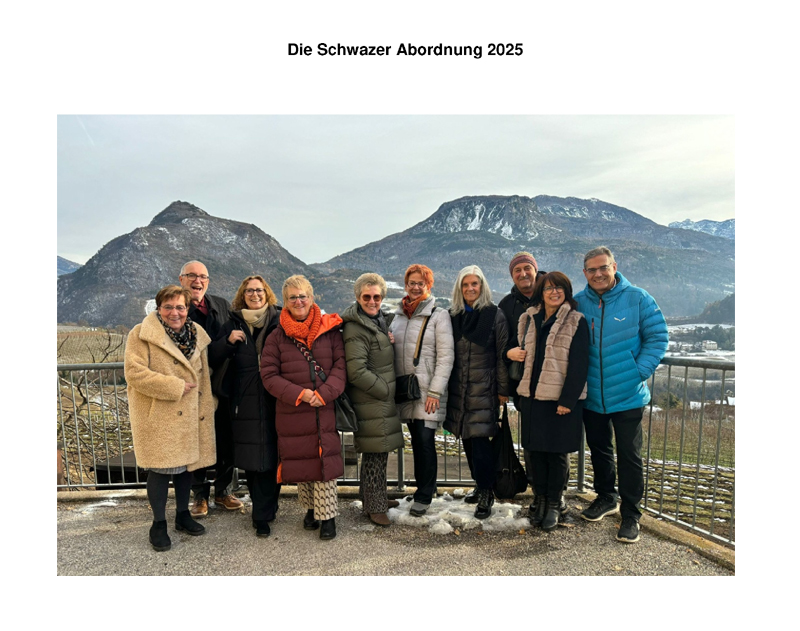 Nach einer gemütlichen Mittagspause im Gemeindezentrum wurde die Schwazer Abordnung noch von Obmann Zanasi in das Stadtzentrum von Trient geführt. Am Ende dieser interessanten Stadtführung ging es nach einer herzlichen Verabschiedung für die Schwazer Abordnung wieder zurück in die Silberstadt Schwaz.
