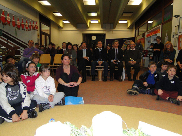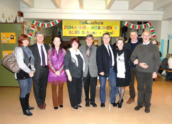 Schwaz, 6. und 7.12.2010 Schüler der Messner Volksschule und der Partnerschule Eugenio Bernardi feierten im Dezember 2010 ein Jubiläum. Die Sprachprojekttage beider Schulen können bereits ein 20-jähriges erfolgreiches Bestehen verzeichnen. Aus diesem Anlass fand diesmal auch ein Leiter- und Arbeitstreffen im bereits dritten Comeniusprojekt statt. Thema: "Durch Gesundheits-Erziehung gute Schule gestalten. Koordinatorin dieses Projektes ist auf Schwazer Seite Hildegard Danler. Zusammengearbeitet wird mit Berlin (DE), Eisenberg (DE), Stein (NL) und Stockholm (SE). Auch von diesen Schulen (ausgenommen Stockholm) waren Vertreter anwesend und nahmen die Gelegenheit wahr, die Umsetzung des Sprachprojektes mit den drei vierten Klassen kennen zu lernen. Koordinatorin des Sprachprojektes ist Edith Vylet, die ebenfalls bereits seit Anfang der Kontakte dabei ist. Die Gastgeber-Schule Schwaz hat auch diesmal ein tolles Programm für die zwei Tage zusammengestellt. Beim herzlichen Empfang der Schulkollegen aus Trient wurde gedichtet, musiziert und gesungen. Kleine Geschenke wurden ausgetauscht. Direktorin Kristina Psenner begrüßte gemeinsam mit der Italienspezialistin Mag. Poostchi vom Sprachprojekt den Vertreter der Stadt Trient, Renato Pegoretti, den Präsidenten des Stadtrates. Auch der Partnerschaftsreferent, Egidio Dalla Costa begleitete die Lehrpersonen und Schüler aus der Partnerstadt. Weitere Gäste waren die KollegInnen des Leiter- und Arbeitstreffens im Comeniusprojekt aus Berlin, Eisenberg und Stein, sowie der Schwazer Bürgermeister und Präsident des Landesschulrates, Dr. Hans Lintner. Stadträtin Ingrid Schlierenzauer und der Obmann des Vereins für Städtepartnerschaften, GR Walter Egger waren zum Willkommen der Gäste gekommen. Auch Bezirksschulinspektorin Astrid Rödlach war anwesend und konnte sich von der langjährigen guten Arbeit der Partnerschaftsschulen überzeuten. Einhellig wurde die Meinung vertreten, dass dieses Vorzeige-Sprachprojekt weiterhin gefördert und ausgebaut werden soll. Später folgte eine Diaschau von Chronicus Hans Sternad über die Aktionen der letzten Jahre im Rahmen des Sprachprojektes in der Messner Schule. Am Nachmittag wurden die Schülerinnen und Schüler - vorweihnachtlich - von Nikolaus und Krampus besucht. Da das Sündenregister der Kinder natürlich äußerst bescheiden war, gab es zur Belohnung eine gute Jause. Danach ging es in die Innenstadt, zum Einkaufen (um die erlernten Deutschkenntnisse auszuprobieren) und zum Nikolausumzug. Am folgenden Tag wurde dann in der Schule Unterricht im Stationsbetrieb geboten. Sprache zum Thema Weihnachten, Basteln, eine Weihnachtsküche, Bewegungs- und Kommunikationsspiele, Vokabeltraining, Musik und Tanz. Interessierte Beobachter waren dabei die Comenius-Partnerschulen, die am Nachmittag ein intensives Arbeitsgespräch und eine Kurzanleitung in Joga für Kinder hatten. Ausklang des Comeniustreffens bildete eine Fahrt ins weihnachtliche Rattenberg und das gemeinsame Abendessen. OAR Hans Sternad,